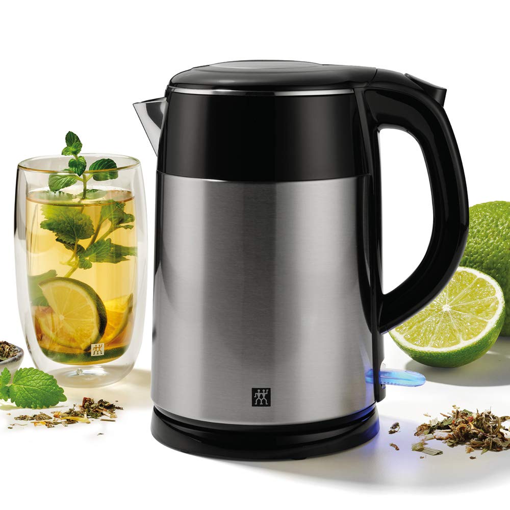 Der ZWILLING Wasserkocher überzeugt mit seiner soliden Bauweise aus hochwertigen Edelstahlmaterialien und einer zuverlässigen Abschaltungsfunktion. Dank des doppelwandigen Designs bleibt die Außenwand während des Betriebs kühl, was die Handhabung sicher und komfortabel macht. Zusätzlich ermöglicht die geringe Berührung mit Kunststoff eine hygienische Nutzung und erleichtert die Reinigung des Wasserkochers.