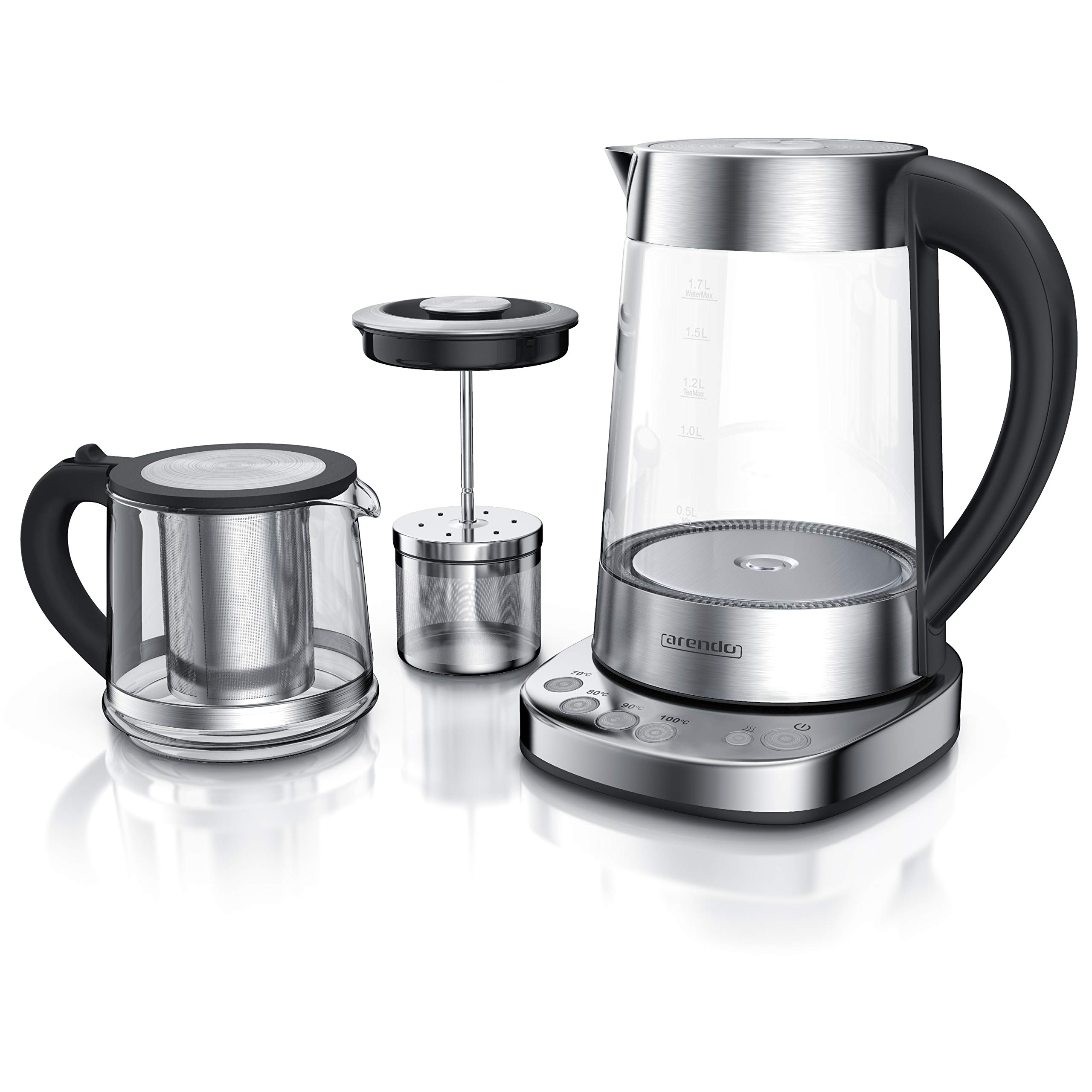 Das Produkt kombiniert eine ansprechende Optik aus Glas und Edelstahl mit einer benutzerfreundlichen Temperatureinstellung. Es ermöglicht das schnelle Erhitzen von Wasser auf die gewünschte Temperatur und bietet zudem eine praktische Warmhaltefunktion, die sicherstellt, dass das Wasser länger heiß bleibt. Diese Eigenschaften machen es ideal für Teeliebhaber sowie für Nutzer, die Wert auf Ästhetik und Funktionalität legen.