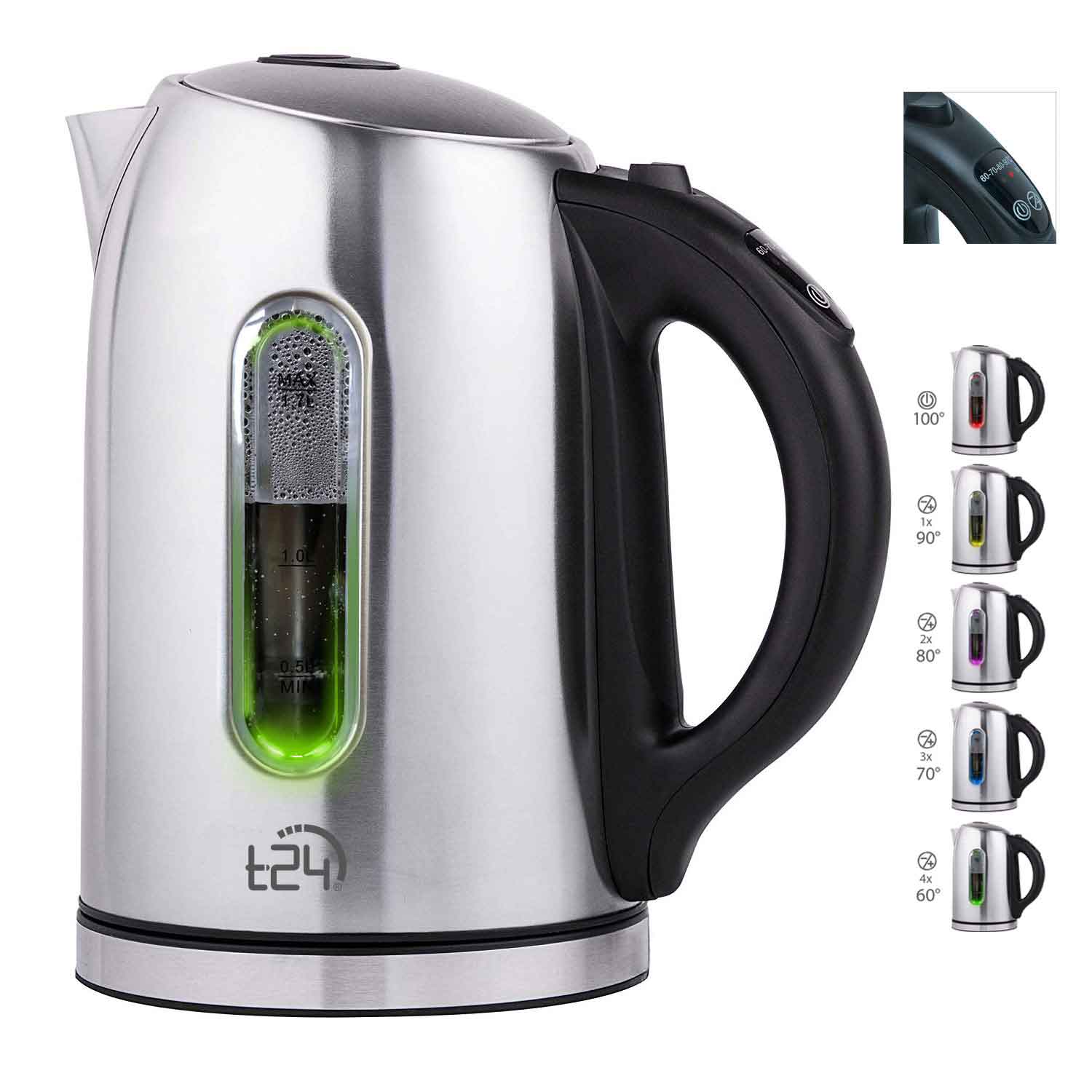 Der T24 Wasserkocher 2200W bietet eine Vielzahl nützlicher Funktionen, die das Aufkochen von Wasser zum Kinderspiel machen. Mit Temperaturregelungen und LED-Beleuchtung ausgestattet, ermöglicht er es dem Benutzer, die Wassertemperatur genau nach Bedarf einzustellen. Die integrierte Warmhaltefunktion sorgt dafür, dass das Wasser auch nach dem Kochvorgang auf der gewünschten Temperatur bleibt. Der Kalkfilter aus Metall und die stabile Bauweise tragen zur Langlebigkeit des Geräts bei.