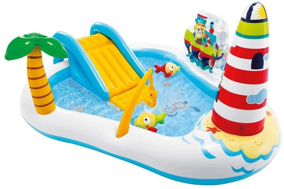 | Name | Intex 'Playcenter Fishing Fun' Planschbecken, 218 x 188 x 99 cm, ab 3 Jahren, inkl. Rutsche, Palme, Leuchtturm und Zubehör |