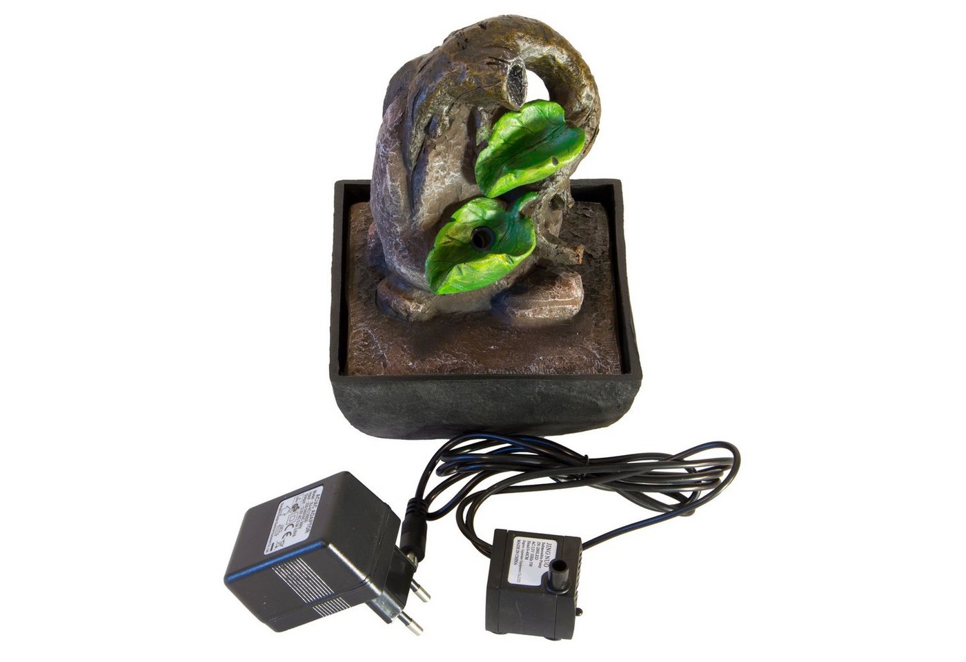 NATIV Haushalt Zimmerbrunnen Blätter13,30 cm Breite, Wasserspiel mit Beleuchtung und Pumpe, Komplettset, Braun- und Grün-Töne