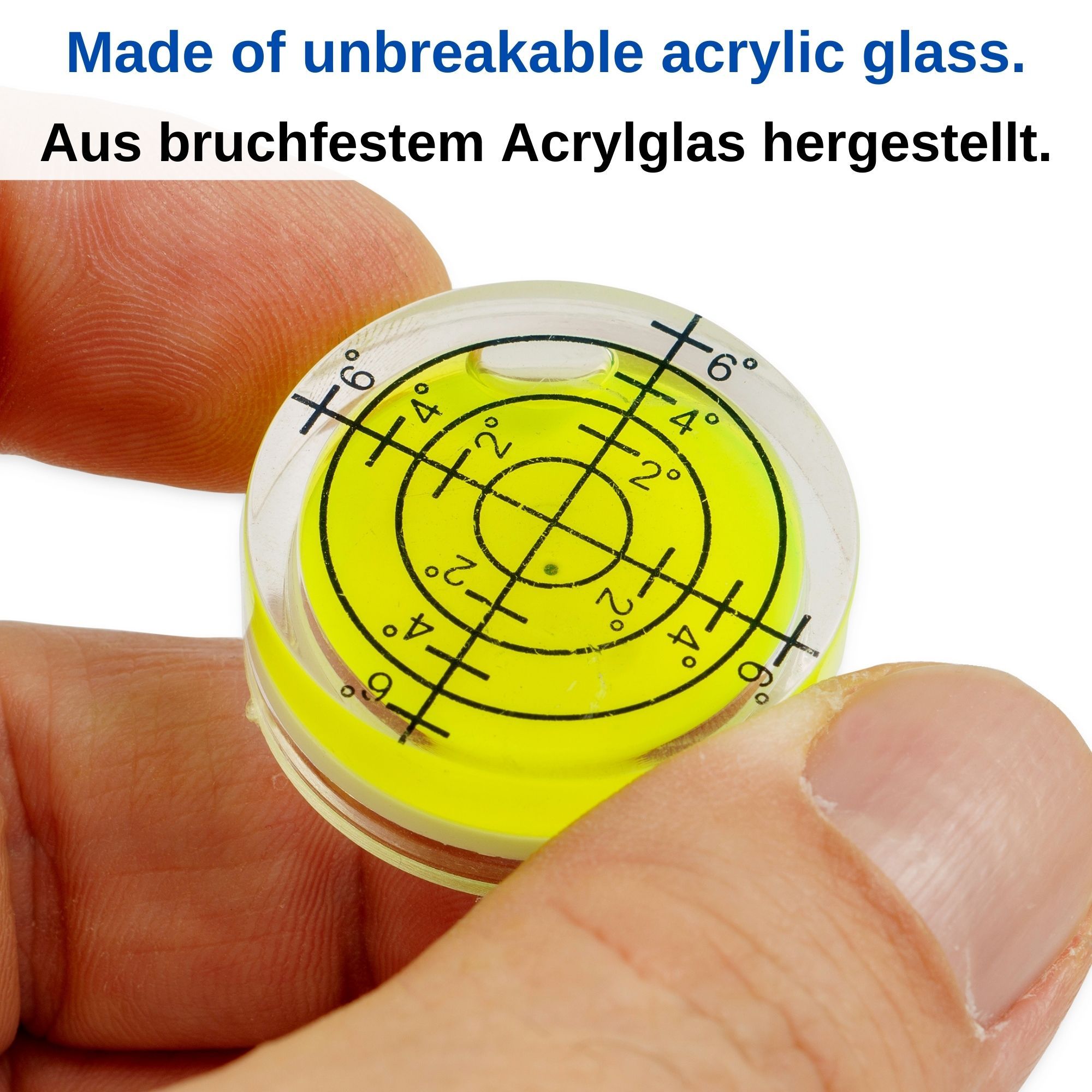 Dieses praktische Hilfsmittel bietet eine einfache Möglichkeit, kleine Flächen präzise zu nivellieren und Geräte wie Kameras auszurichten. Dank der leicht ablesbaren Skala ist die Nutzung intuitiv und effizient. Die kompakte Größe ermöglicht eine handliche Handhabung und erleichtert den Einsatz in unterschiedlichen Situationen.