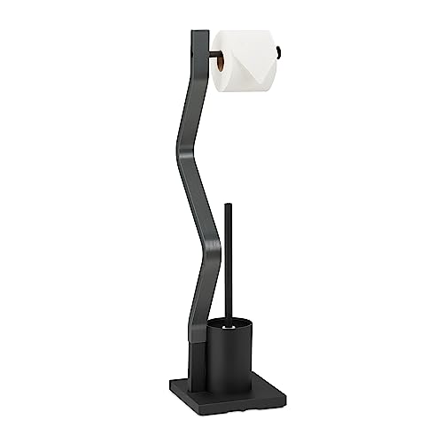 Relaxdays WC Garniturstehender Toilettenpapierhalter, Toilettenbürste mit Bürstenhalter, 75x18,5x18,5 cm, schwarz/grau