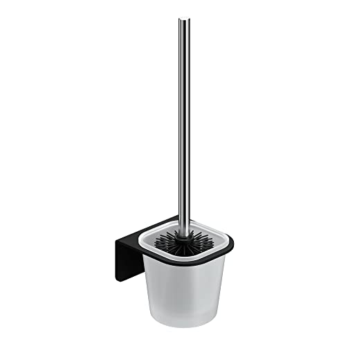 WEISSENSTEIN Toilettenbürstenhalter Set zur Wandmontage ohne Bohren - WC-Garnitur Set mit BürsteBürstenhalter aus Glas, schwarzer Edelstahl Halterung zum Kleben