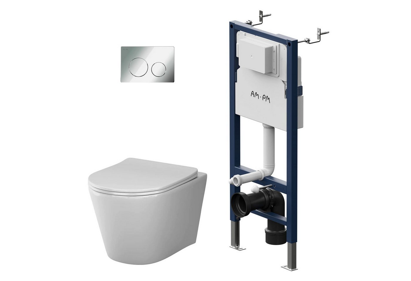 AM.PM Tiefspül-WC Wand WC Spike Hänge WC Spülrandloses Toilette aus KeramikTiefspüler, Suspension, wandhängend, Abgang waagerecht, Komplett Set, inkl. abnehmbarer WC Sitz mit Absenkautomatik in klassischem Weiß