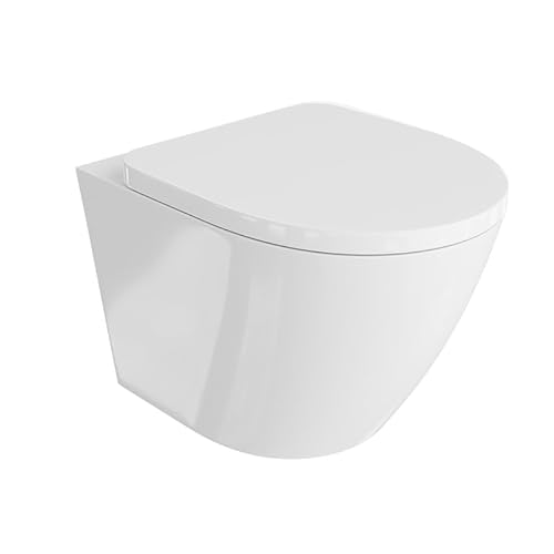 domino LAVITA Wand-WC Sogo | Hänge Toilette | Toilettendeckel mit Absenkautomatik & Metallscharniere | Toiletten Spülrandlos Hängend | Toilettenbecken | 365x490x395 mm | Weißer Glanz