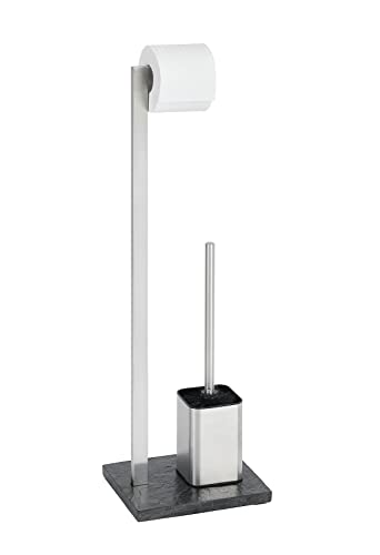 WENKO Stand WC-Garnitur Slate-RockStänder für Toilettenpapier & Toilettenbürste, WC-Papierhalter in Schiefer-Optik, stehender Rollenhalter inkl. Bürste, rostfreier Edelstahl, Anthrazit