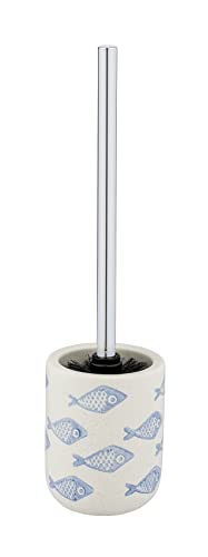 WENKO WC-Garnitur Aquamarinhochwertiger Bürstenhalter aus edler Keramik in mattem Weiß mit blauer, maritimer Szenerie, handbemalt, hygienische WC-Bürste, Ø 10 x 40 cm
