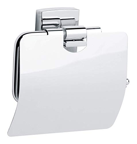 tesa KLAAM Toilettenpapierhalter mit Deckelverchromt - WC-Rollenhalter zur Wandbefestigung ohne Bohren, inkl. Klebelösung - 125mm x 140mm x 53mm