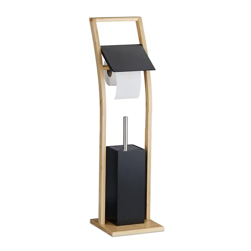 Relaxdays WC GarniturBambus, stehender Klopapierhalter, Toilettenbürste mit Bürstenhalter, 74x20x20 cm, schwarz/Natur