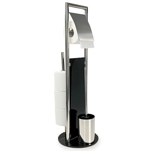 • Die WENKO Stand WC-Garnitur Ravina ist eine platzsparende 3 in 1 Funktion, bestehend aus Toilettenpapierhalter, Ersatzrollenhalter und WC-Bürstenhalter inklusive Toilettenbürste