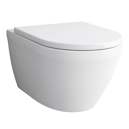 Alpenberger Toilette Spülrandlos | Kloschüssel mit Nano | WC Sitz mit Absenkautomatik | Hänge WC Badezimmer Set | Moderne Gäste WC Toiletten | Tiefspüler Passend Geberit (Almeira 8200 SU)