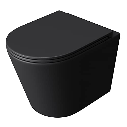 doporro Hänge-Toilette A108 schwarz matt inkl. Soft-Close spülrandloses-Toilette Hänge-WC aus Keramik