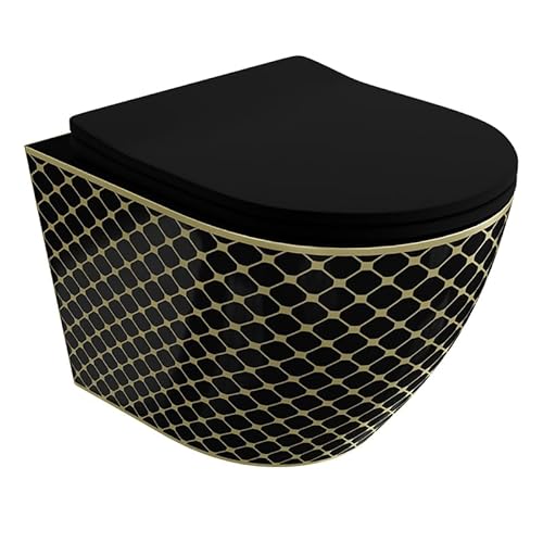 lavita Wand-WC Sofi Slim Black Night | Hänge Toilette mit Absenkautomatik & Metallscharniere | Spülrandlos & Wassersparend | Schwarz/Gold