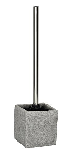 WENKO WC-Garnitur Granithochwertiger Bürstenhalter aus Kunststoff in Stein-Optik, inklusive Toilettenbürste, 10 x 39 x 10 cm, Grau