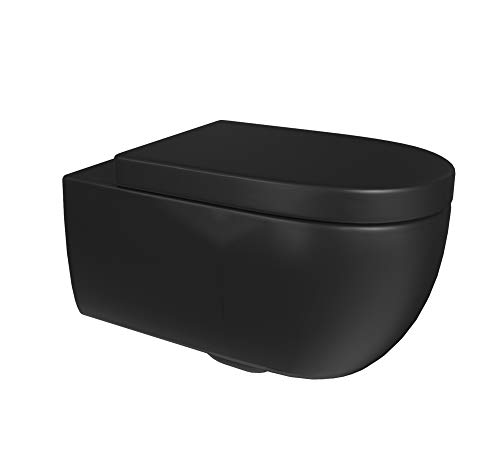 Aqua Bagno | Schwarze Toilette ohne SpülrandKeramik, Design Gäste-WC, Softclose WC-Sitz | 49 cm kurz