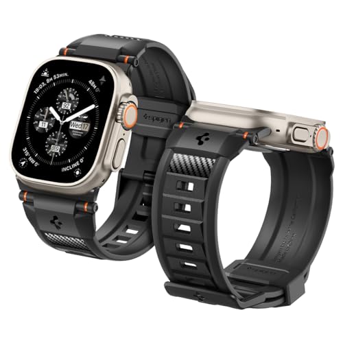 Das Spigen Rugged Ultra Band Armband in Matt Schwarz ist ein robustes und stylisches Armband, das gut zur Apple Series 9 passt. Es bietet einen hohen Tragekomfort und schützt die Uhr effektiv, ist jedoch möglicherweise nicht ideal für Personen, die zu Schwitzen neigen.