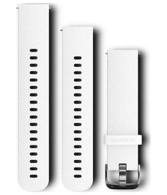 Das Garmin Ersatz-/Wechselarmband für die vivomove HR ist eine praktische Möglichkeit, das Armband der Uhr individuell anzupassen und zu erneuern. Das Silikonmaterial in weiß-Edelstahl (20mm) bietet angenehmen Tragekomfort und sieht dabei auch noch ansprechend aus. Zusätzlich verfärbt es sich nicht und ist sehr langlebig.
