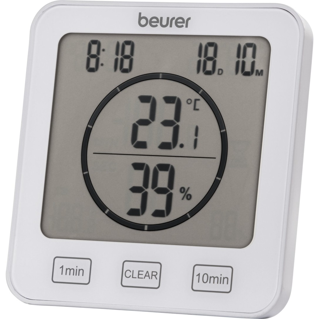 Das Beurer HM 22 Thermo-/Hygrometer bietet eine zuverlässige Messung von Temperatur und Luftfeuchtigkeit. Dank seiner präzisen Sensoren erhältst du realistische Werte, die dir dabei helfen können, ein optimales Raumklima zu schaffen. Das schicke Design des Geräts macht es zudem zu einem ansprechenden Accessoire in deinem Zuhause.
