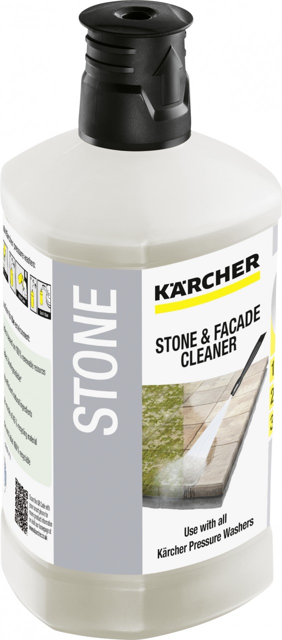 Der Kärcher Stein- und Fassadenreiniger bietet eine 3-in-1-Wirkung für verschiedene Hochdruckreiniger-Modelle. Er enthält natürliche Inhaltsstoffe und ist gut verpackt sowie mit einer leicht verständlichen Anleitung versehen. Ein zufriedener Kunde lobt das Ergebnis des Reinigers.
