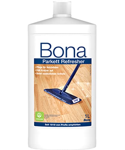 Der BONA Parkett Refresher ist ein Pflegeprodukt, das einfach aufzutragen ist und eine schnelle Trocknungszeit bietet. Es sorgt für einen schönen Glanz und verbessert das Erscheinungsbild von Parkettböden, während es gleichzeitig Kratzer weniger sichtbar macht. Die Ergiebigkeit ist gut, und das Produkt hat einen angenehmen Duft. Für optimale Ergebnisse sollte es in der Anfangsphase häufiger angewendet werden.