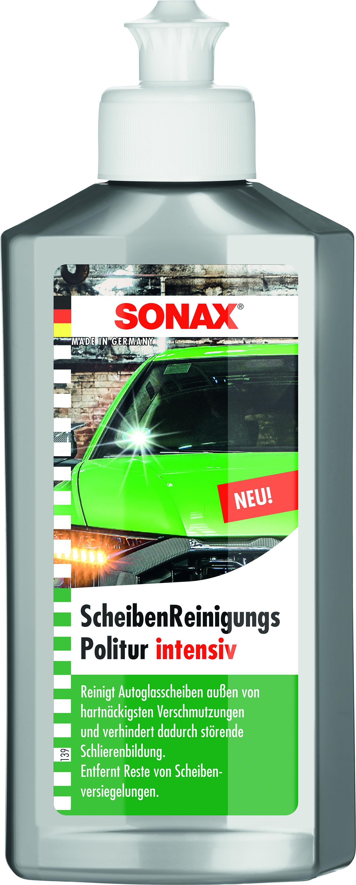 | Anwendung | Vor Gebrauch schütteln. Reichlich Produkt auf die Scheibe geben und mit feuchtem SONAX ApplikationsSchwamm Art. Nr. 04173000 oder einem anderen weichen Schwamm intensiv verreiben. Nicht antrocknen lassen, sofort mit dem ausgewaschenen SONAX ApplikationsSchwamm und klarem Wasser die milchigen Rückstände auf der Scheibe und dem Lack gründlich abwaschen. Auch die Wischerblätter von Schmutzrückständen befreien. Mit einem saugfähigen Tuch z.B. SONAX MicrofaserTrockenTuch PLUS Art. Nr. 04512000 das Fahrzeug trocknen. |