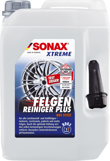 Der SONAX XTREME Felgenreiniger PLUS ist ein äußerst effektives Reinigungsmittel, das hartnäckigen Bremsstaub zuverlässig entfernt. Die Anwendung gestaltet sich einfach und die ph-hautneutrale Formel sorgt für eine hervorragende Materialverträglichkeit. Durch den angenehmen Citrus Duft bleiben Ihre Stahl-und Leichtmetallfelgen frisch und sauber.