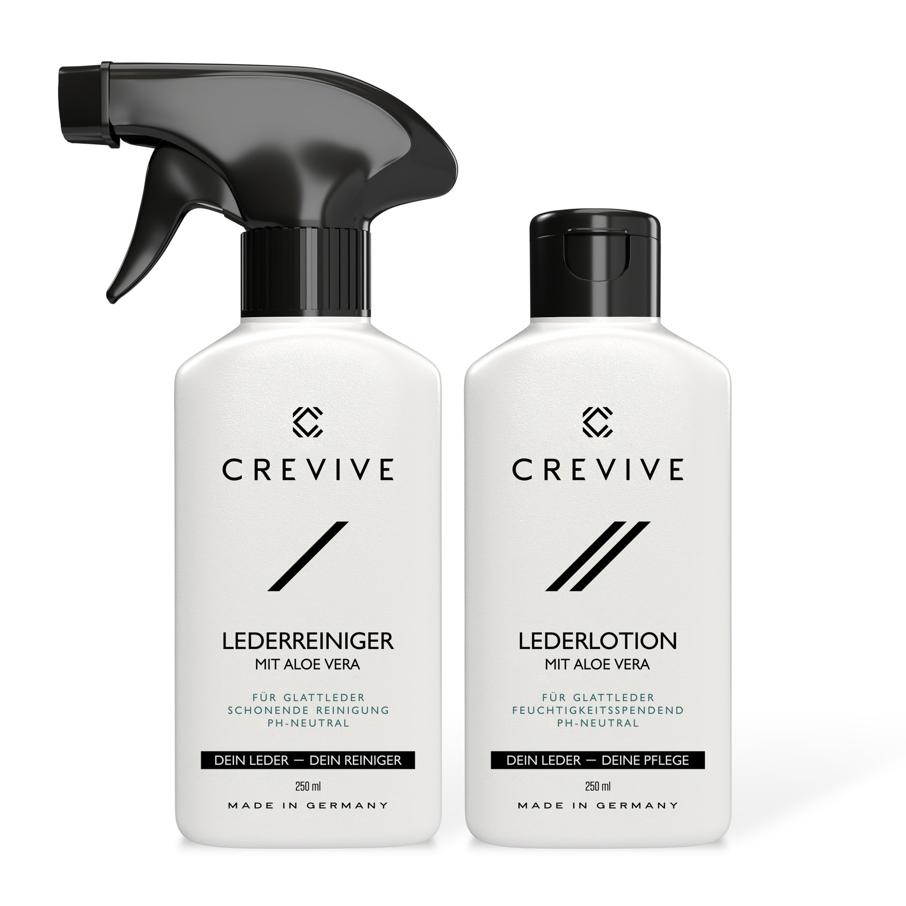 | Lieferumfang | 1x CREVIVE Lederreiniger - 250 ml, 1x CREVIVE Lederlotion - 250 ml, 1x Reinigungsschwamm wiederverwendbar (13 x 6 x 4,5 cm), 2x Reinigungstuch / Auftragtuch wiederverwendbar (30 x 15 cm) |