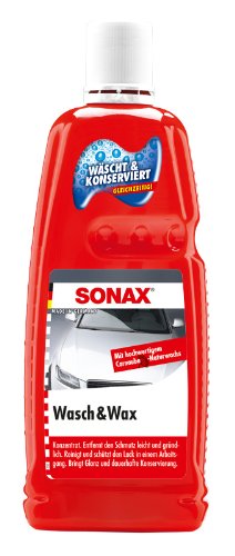 Sonax Wasch+Wax ist ein effektives Produkt zur Reinigung und Versiegelung von Fahrzeuglacken. Es reinigt gut, hinterlässt keinen Schmutz und sorgt für einen schönen Glanz. Die Anwendung erfordert warmes Wasser für die beste Wachswirkung. Die Schaumbildung ist jedoch gering, was einige Nutzer als Nachteil empfinden.