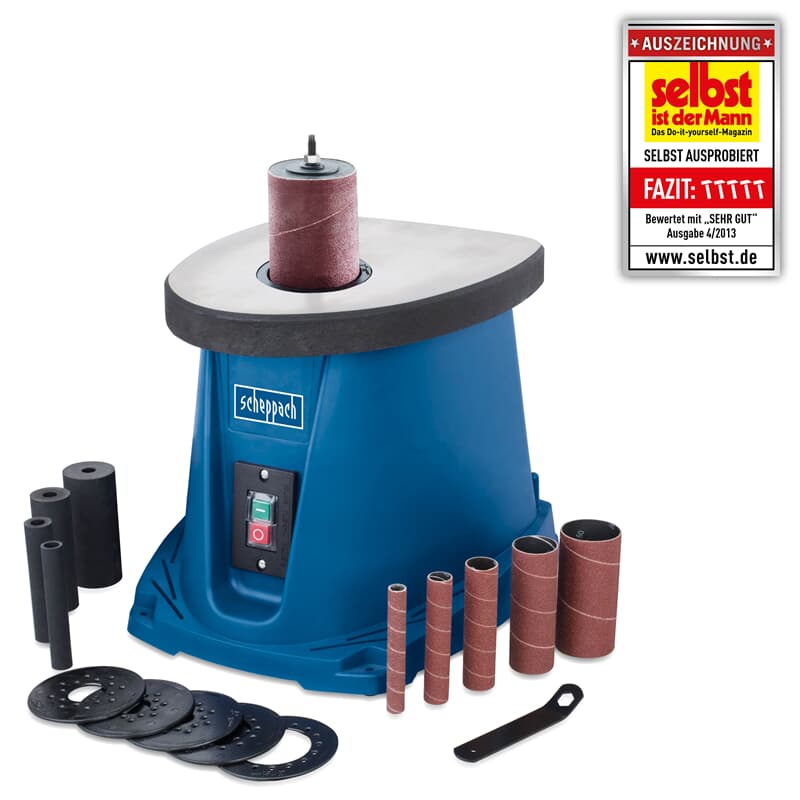 Der oszillierende Spindelschleifer von Scheppach bietet eine leistungsstarke und präzise Schleiflösung für verschiedenste Holzarbeiten. Mit einer Leistung von 450W und einem Oszillations-Hub von 16 mm ermöglicht er ein effizientes Arbeiten an verschiedenen Werkstücken. Dank des mitgelieferten Zubehörs, wie den sechs Schleifhülsen, ist der Wechsel der Schleifwalzen einfach und schnell durchführbar.
