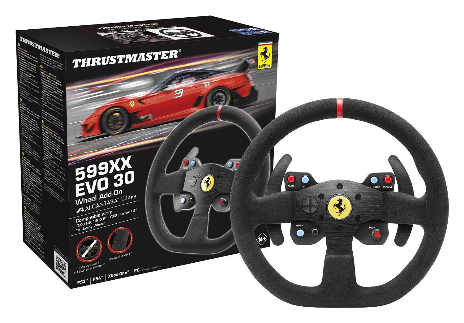 Das Thrustmaster Ferrari F599XX EVO 30 Wheel AddOn Alcantara Edition ist ein Lenkrad-AddOn, das ein realistischeres Fahrgefühl und eine verbesserte Optik im Vergleich zum Standardlenkrad bietet. Das hochwertige Alcantara-Material fühlt sich sehr angenehm an und die Schaltwippen sind gut erreichbar. Die Buttons des AddOns sind solide verarbeitet. Allerdings kann es bei einigen Spielen zu Kompatibilitätsproblemen kommen.