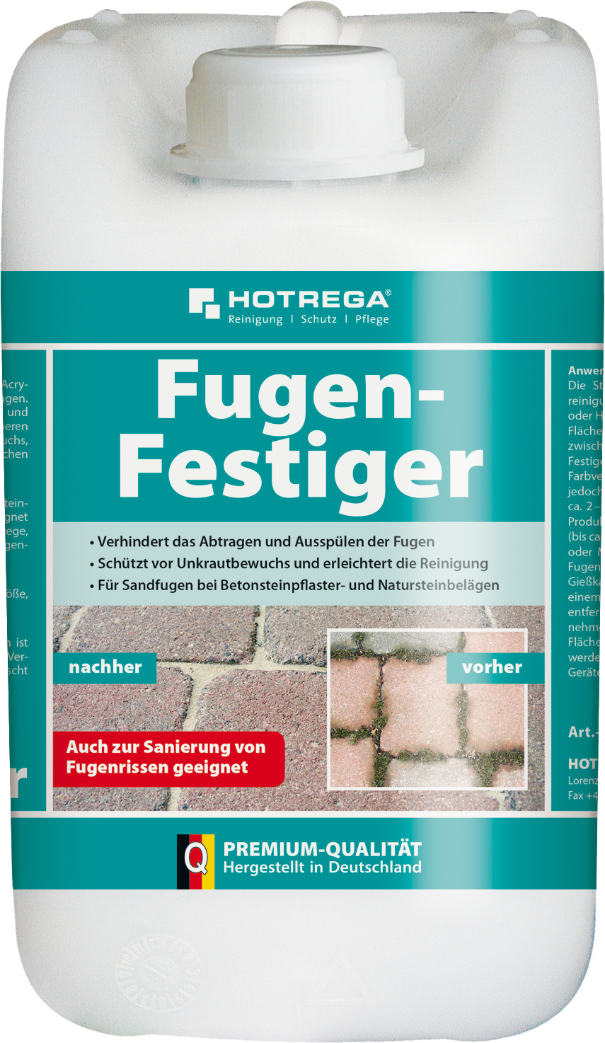 Der Fugen-Festiger in einer 5 Liter Größe bietet eine effektive Lösung zur dauerhaften Stabilisierung von Fugen im Außenbereich. Durch seine saubere Arbeitsweise und das gute Ergebnis nach der Anwendung erfüllt er die Funktion wie beschrieben, was zu einer erleichterten Pflege von gepflasterten Flächen führt.