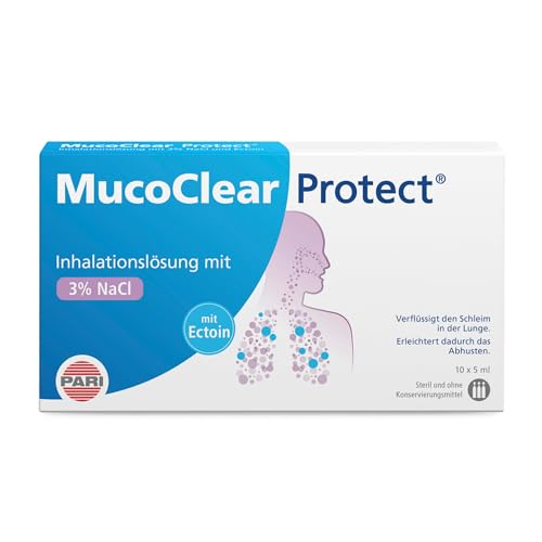 • Die PARI MucoClear Protect 3% NaCl Lösung ist eine sanfte und wirksame Kochsalzlösung, die dabei hilft, Schleim zu lösen und das Abhusten bei Atemwegserkrankungen wie Bronchitis zu erleichtern