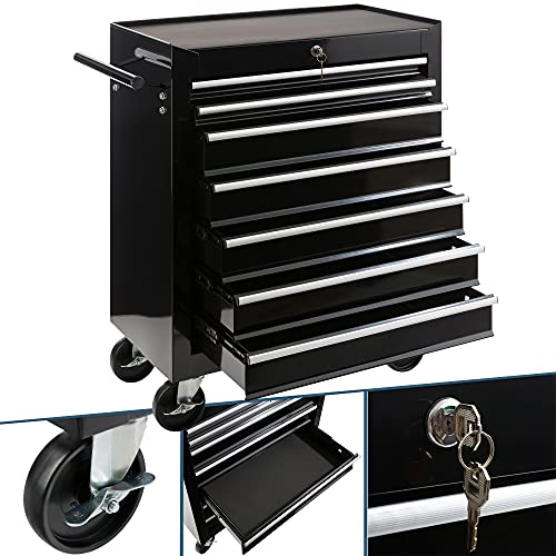 Dieser Werkstattwagen ist vielseitig einsetzbar und richtet sich an Heimwerker, Hobbybastler oder auch professionelle Handwerker, die auf der Suche nach einer mobilen Lösung zur Aufbewahrung ihres Werkzeugsortiments sind. Die schwarze Lackierung verleiht dem Rollwagen zudem eine moderne Optik, die in jeder Werkstatt gut zur Geltung kommt.