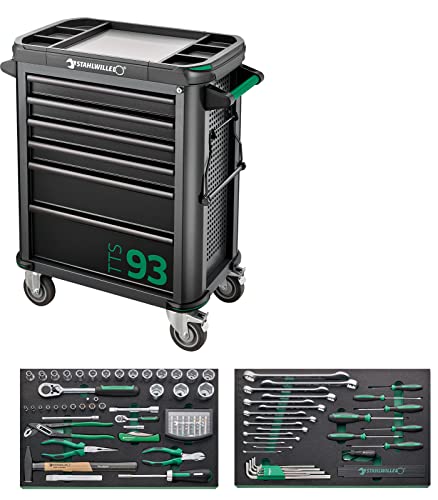 Stahlwille 93/130 Werkstattwagen bestückt mit 130-tlg. Premium-Werkzeugset l Erstausrüstung für IndustrieHandwerk und Automotive l Made in Germany