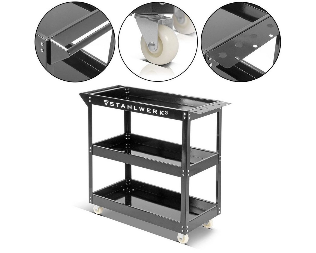 STAHLWERK Werkstattwagen TC-3 STRobuster Werkzeugwagen mit 200 kg Tragkraft, 3 Ladeflächen und Lochleiste