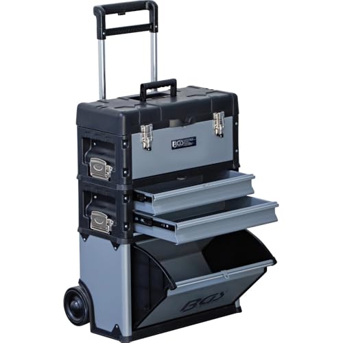 Der BGS TECHNIC Montagewagen ist ein praktisches Werkzeug für Hobbyschrauber, der eine einfache Handhabung und die Möglichkeit zur Integration zusätzlicher Teile bietet. Die Schubladen und Klappen sind stabil und verriegeln sicher, jedoch gibt es Bedenken hinsichtlich der Stabilität des Teleskopgriffs und der Innenmaße der Schubladen. Insgesamt bietet der Wagen ein gutes Preis-Leistungs-Verhältnis.
