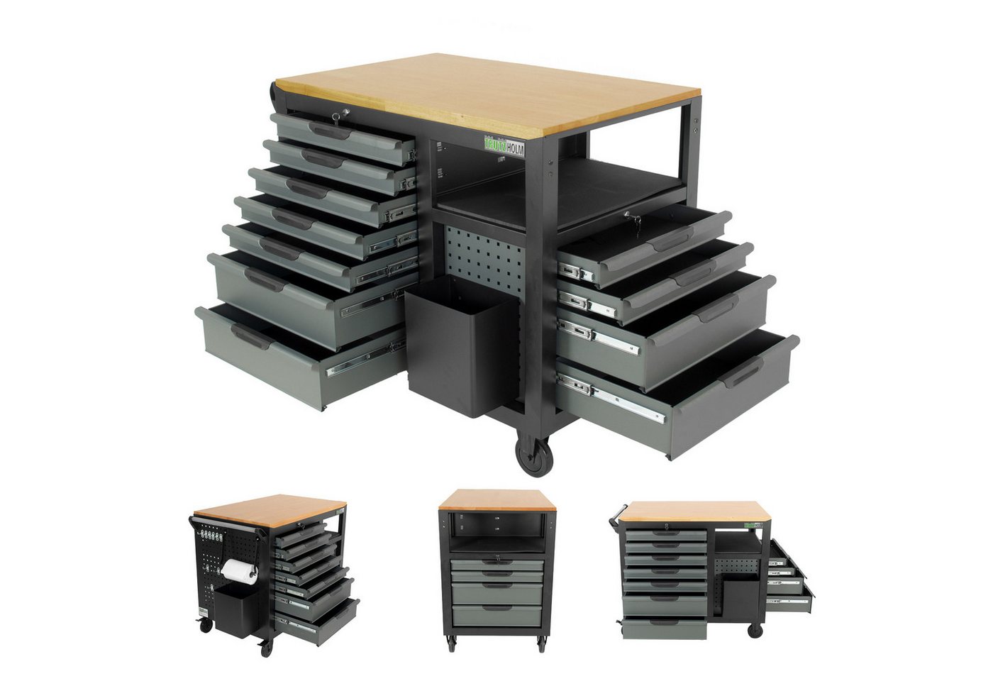 • Zusätzlich ist der Werkstattwagen unbestückt, sodass individuelle Anpassungen an die eigenen Bedürfnisse möglich sind.