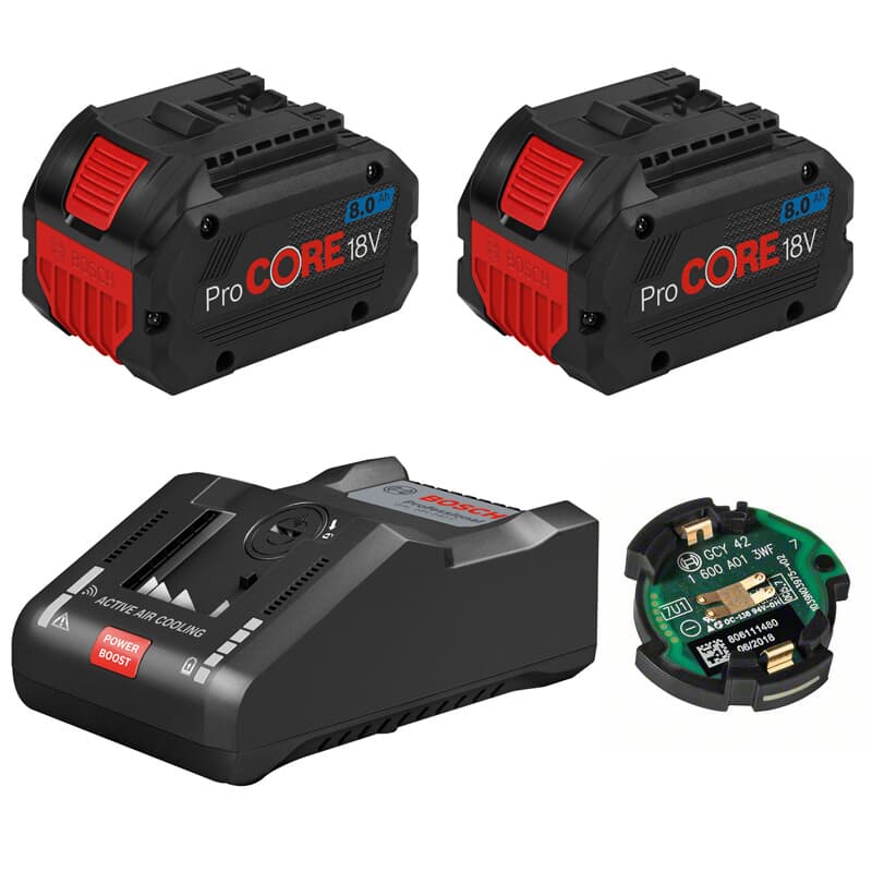 Starter-Set mit zwei 8,0 Ah Akkus und Schnellladegerät für maximale Effizienz.
