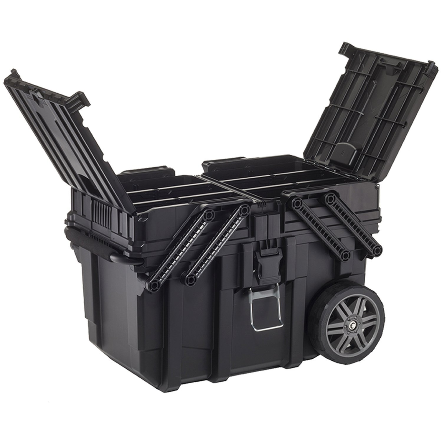Der Werkzeugkasten auf Rädern bietet viel Stauraum und eine praktische Aufteilung für die Organisation von Werkzeugen und Materialien. Mit einer robusten Konstruktion ermöglicht er einen sicheren Transport dank der Rollen und des Griffs. Der günstige Preis macht ihn zu einer attraktiven Lösung für Heimwerker und Profis.