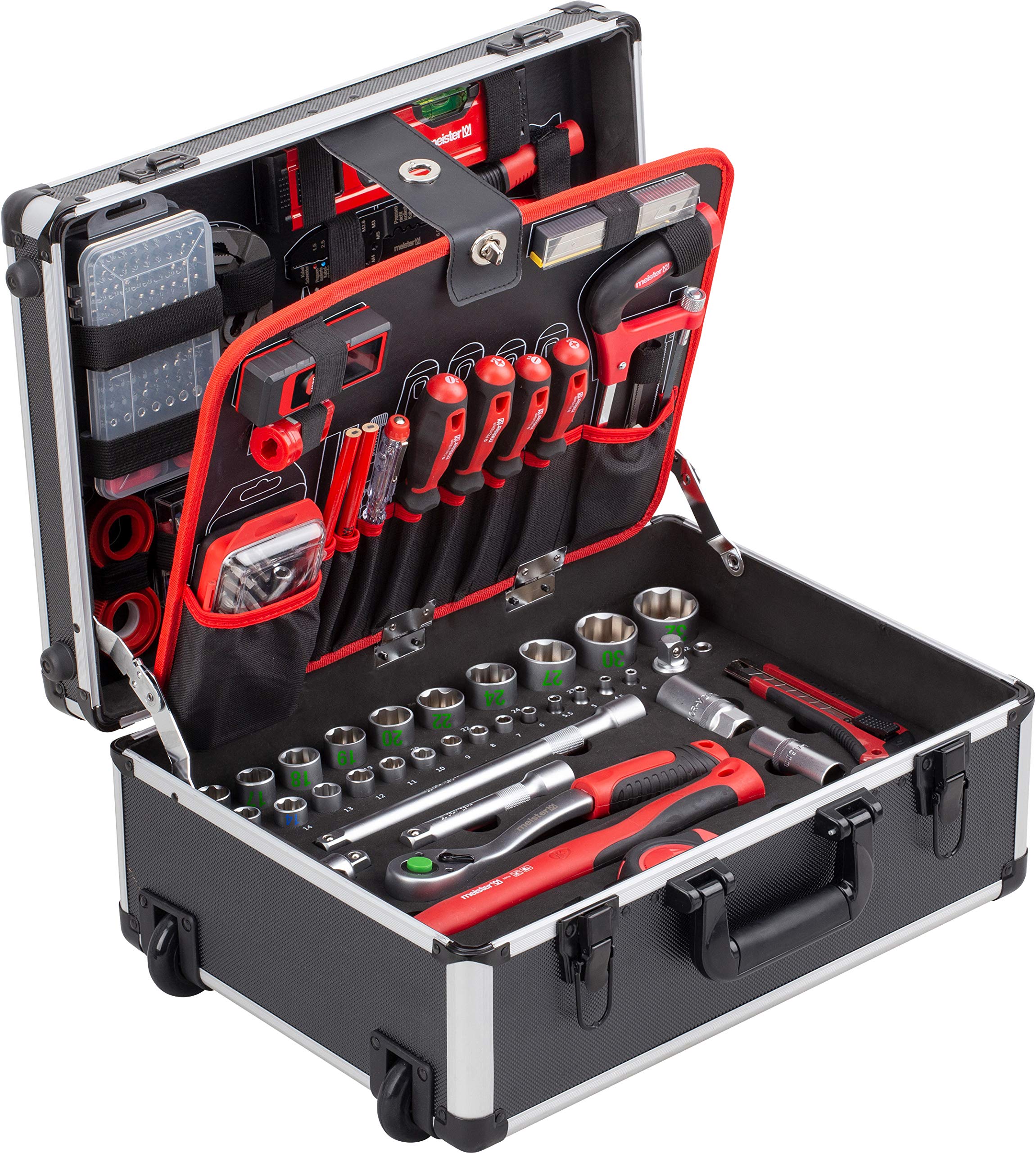Der Meister Werkzeugtrolley 238-teilig bietet eine umfangreiche Auswahl an Werkzeugen für den gelegentlichen Gebrauch. Mit einem praktischen Entfernungsmesser ausgestattet, stellt dieses Set ein gutes Preis-Leistungs-Verhältnis dar und eignet sich besonders gut für Hobbyanwendungen.