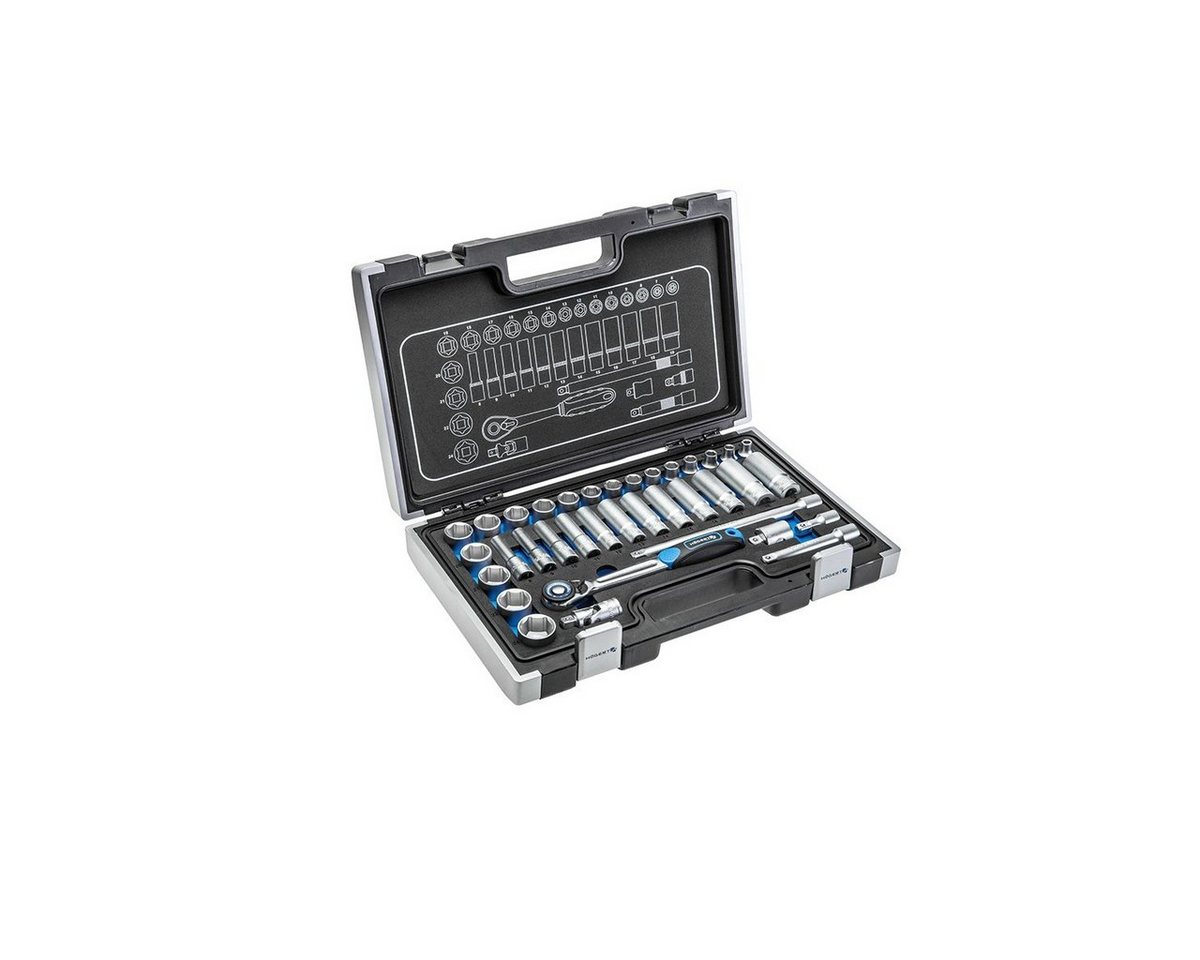 Högert Werkzeugbox Steckschlüssel-Satz Ratschenkoffer KnarrenkastenChrom-Vanadium-Stahl, 3/8" Zollmaß, 36-teiliges Set
