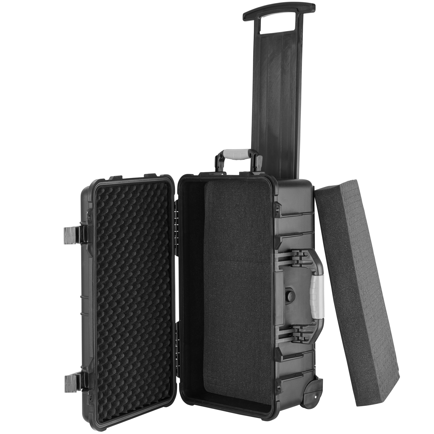 Dieses Produkt bietet eine robuste Bauweise, die es ermöglicht, verschiedene Ausstattungen wie Werkzeuge oder Kameraequipment sicher zu transportieren. Mit einer Tragfähigkeit von bis zu 23 kg und einem rollbaren Design mit Teleskopgriff wird der Transport besonders komfortabel und einfach gestaltet. Die leistungsfähigen Räder erleichtern das Manövrieren auch auf unebenem Gelände und tragen zur Benutzerfreundlichkeit bei.