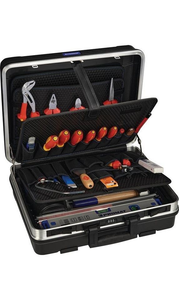 • Der Werkzeugkoffer ist ideal für Elektroinstallationen und bietet eine Vielzahl an nützlichen Werkzeugen in einem robusten Aluminium Rahmenkoffer