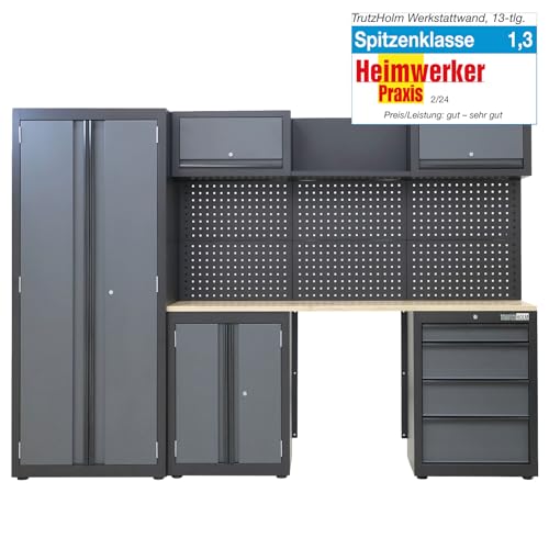 "Knapp 1.000 Euro ruft Trutzholm für diese Werkstattwand. Das ist auf den ersten Blick nicht wenig! In Anbetracht der gebotenen Qualität, mit durchdachten Detaillösungen, wie Hebedämpfern an den Oberschränken, Gewindehülsen statt Schrauben mit Muttern und einer blitzsaubereren Verarbeitung ist dieser Preis jedoch absolut fair. Wer so eine Qualität selber bauen möchte, zahlt drauf!"