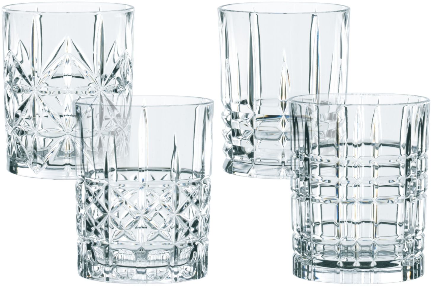 Hochwertiges Nachtmann Whiskybecher Highland 4er Set mit 4 verschiedenen Schliffdekoren. Brillant und klar im Design, mit erhöhter Bruchfestigkeit. Maße: 34,5 cl, Ø 8,2 cm, H 10,2 cm. **Highlights** - 4 verschiedene Schliffdekore: Jeder Becher ein Unikat - Brillantes und klares Design: Für stilvollen Whiskygenuss - Erhöhte Bruchfestigkeit: Langlebig und robust **Produkteigenschaften** - Marke: Nachtmann - Farbe: Transparent - Material: Glas - Länge: 8,2 cm - Breite: 8,2 cm - Höhe: 10,2 cm - Durchmesser: 8,2 cm - Gewicht: 340 g - Volumen: 345 ml - Brillant und klar - Erhöhte Bruchfestigkeit **Lieferumfang** - 4 Nachtmann Whiskybecher Highland