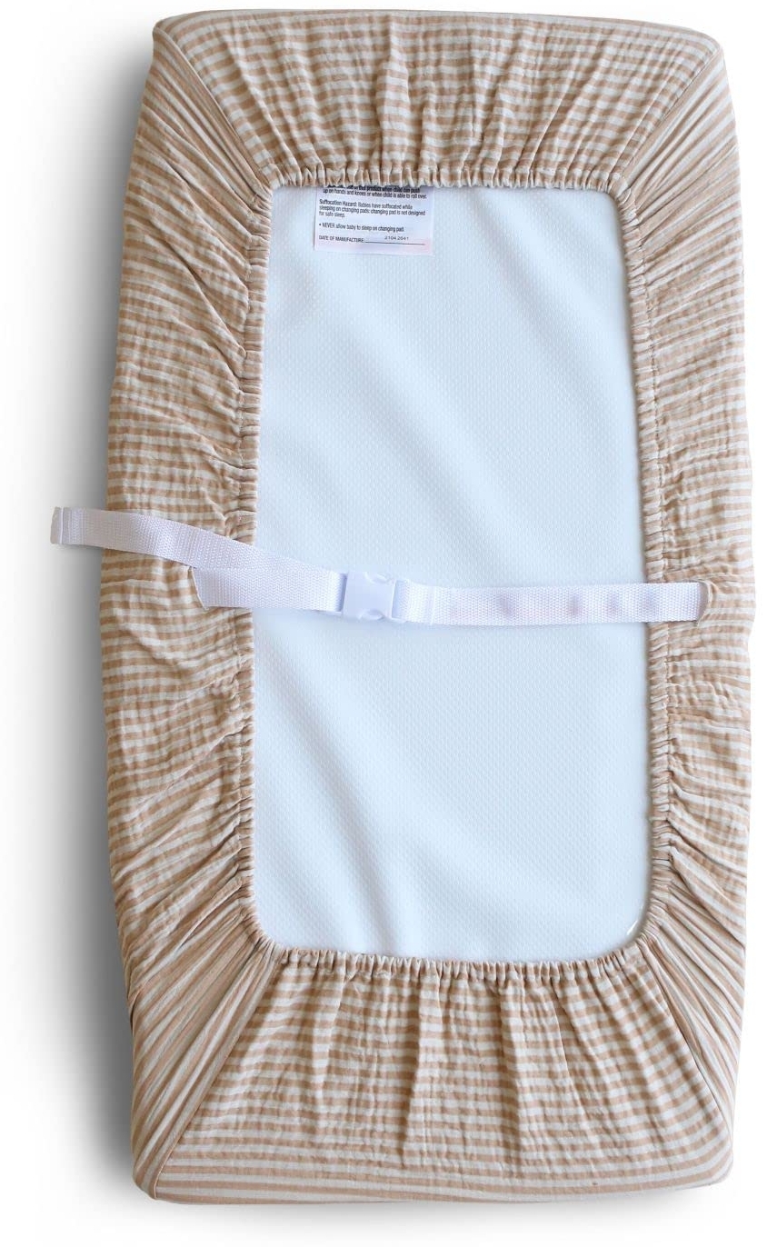 | Name | Mushie Waschbar Wickelauflagenbezug | Wickelauflagehbezug 70x45 cm, Passend für Standard-Wickelauflage | Verstellbare Sicherheitsgurte (Natural Stripes) |
