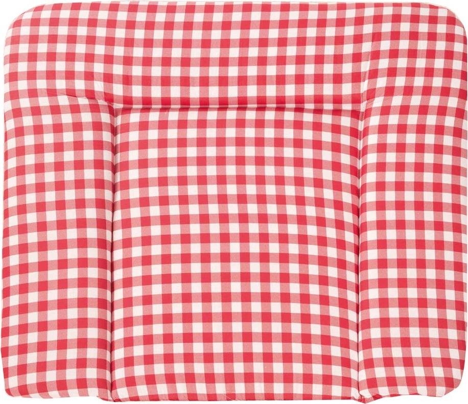 Auf dieser weichen Wickelauflage in Vichy-Karo Rot liegt Ihr Nachwuchs beim Wickeln und Pflegen bequem! Der Oberflächenstoff ist besonders hautfreundlich und anschmiegsam für Ihr Baby. Er besteht aus einem Baumwollpolyestergemisch (65 % Polyester und 35 % Baumwolle) und wurde mit phtalatfreiem PU beschichtet. Die Wickelauflage ist für komfortables und bequemes Liegen beim Wickeln und Pflegen weich gepolstert. Der 3-seitig erhöhte Rand sorgt für mehr Sicherheit und Geborgenheit. Die **Maße** 85x75 cm, Höhe ca. 4 cm, sind an die meisten "Standardwickelkommoden" angepasst. Die Oberfläche der Wickelunterlage ist abwischbar und pflegeleicht. Alle verwendeten Materialien sind schadstoffgeprüft und zertifiziert. Zusätzlich werden regelmäßig während der Herstellung überprüft. Sie sind 100% PVC- und phthalatfrei.