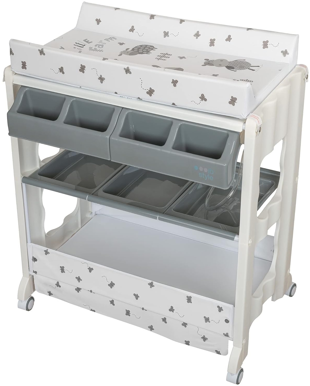 | Name | ib style ISA 2-in-1 Wickeltisch mit Badewanne, mobile Wickelkombination, rollbar, große Aufbewahrungsfläche, Wickelkommode für Babys Kleinkinder, My Little Farm Grau |