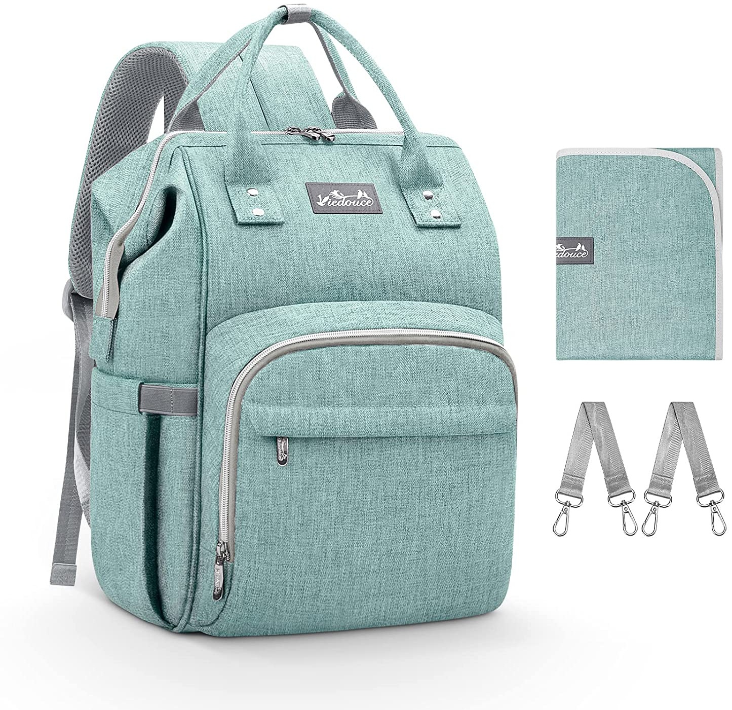 | Name | Viedouce Baby Wickelrucksack Wickeltasche Babytasche,Wasserdicht Oxford Große Kapazität für ausgehen,Multifunktional zum Rucksack mit 1 Stück Wickelauflage und 2 Kinderwagengurten (Cyan) |